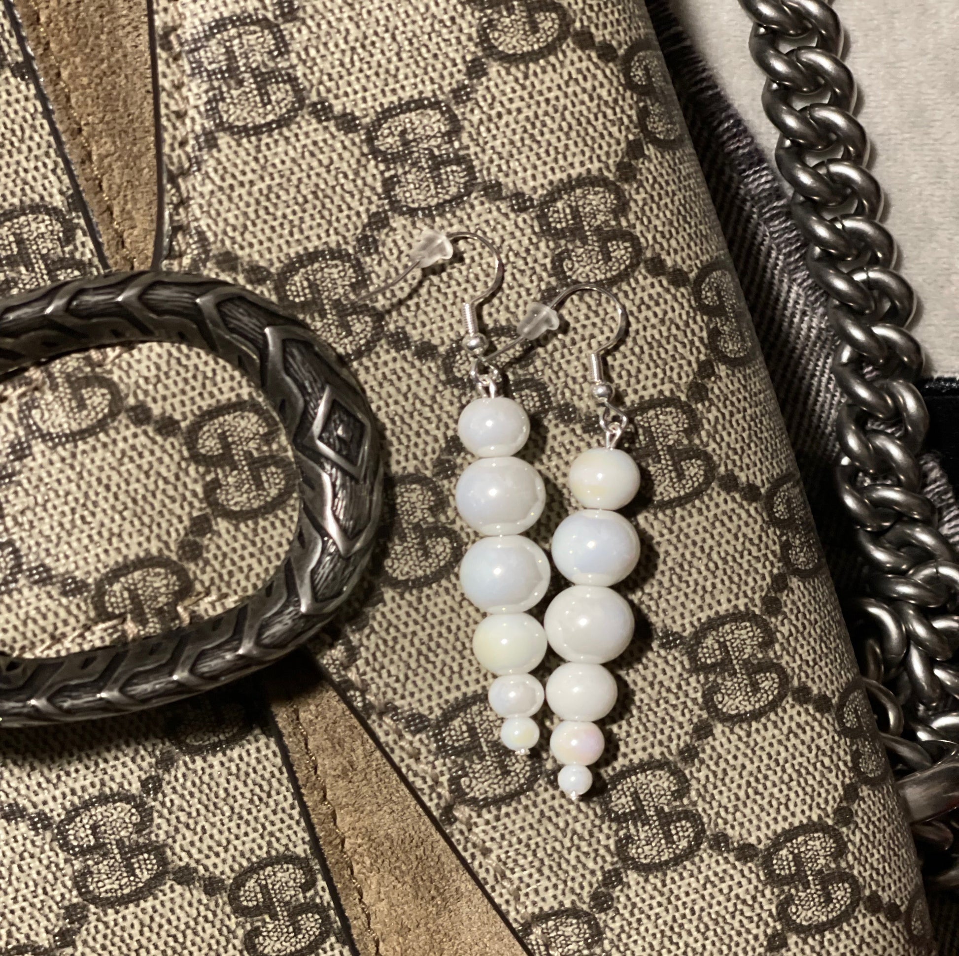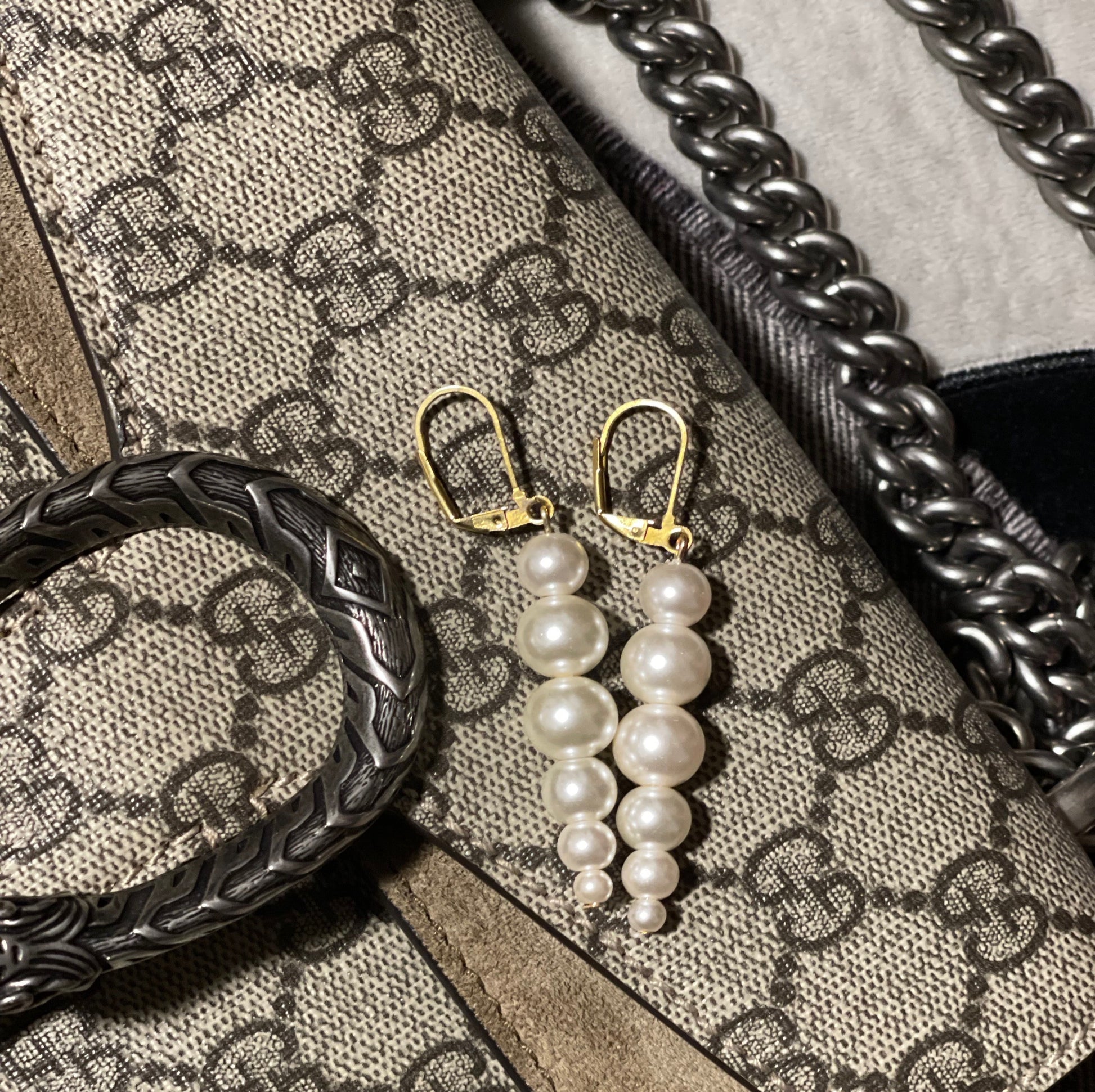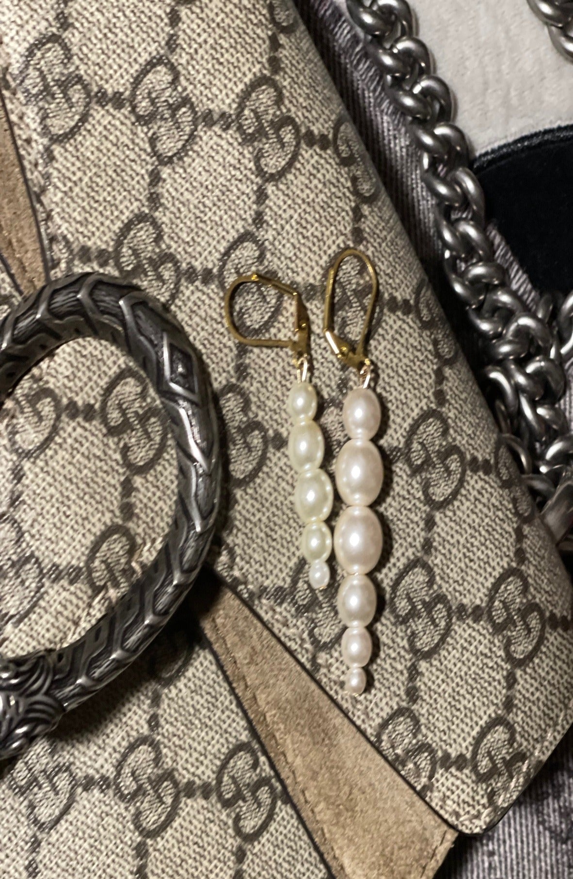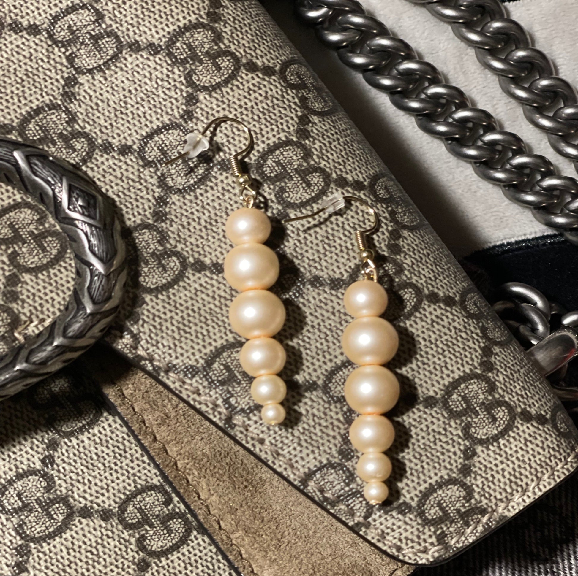 These Dangle Pearl Earrings are made with beautiful glass pearls that are timeless and classic. If you are unsure of what to wear, these earrings won’t fail.